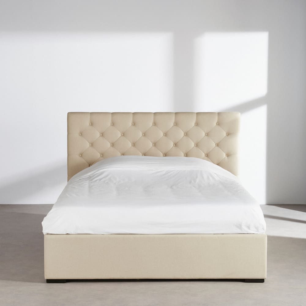 Letto beige con contenitore e rete a doghe 140x190cm