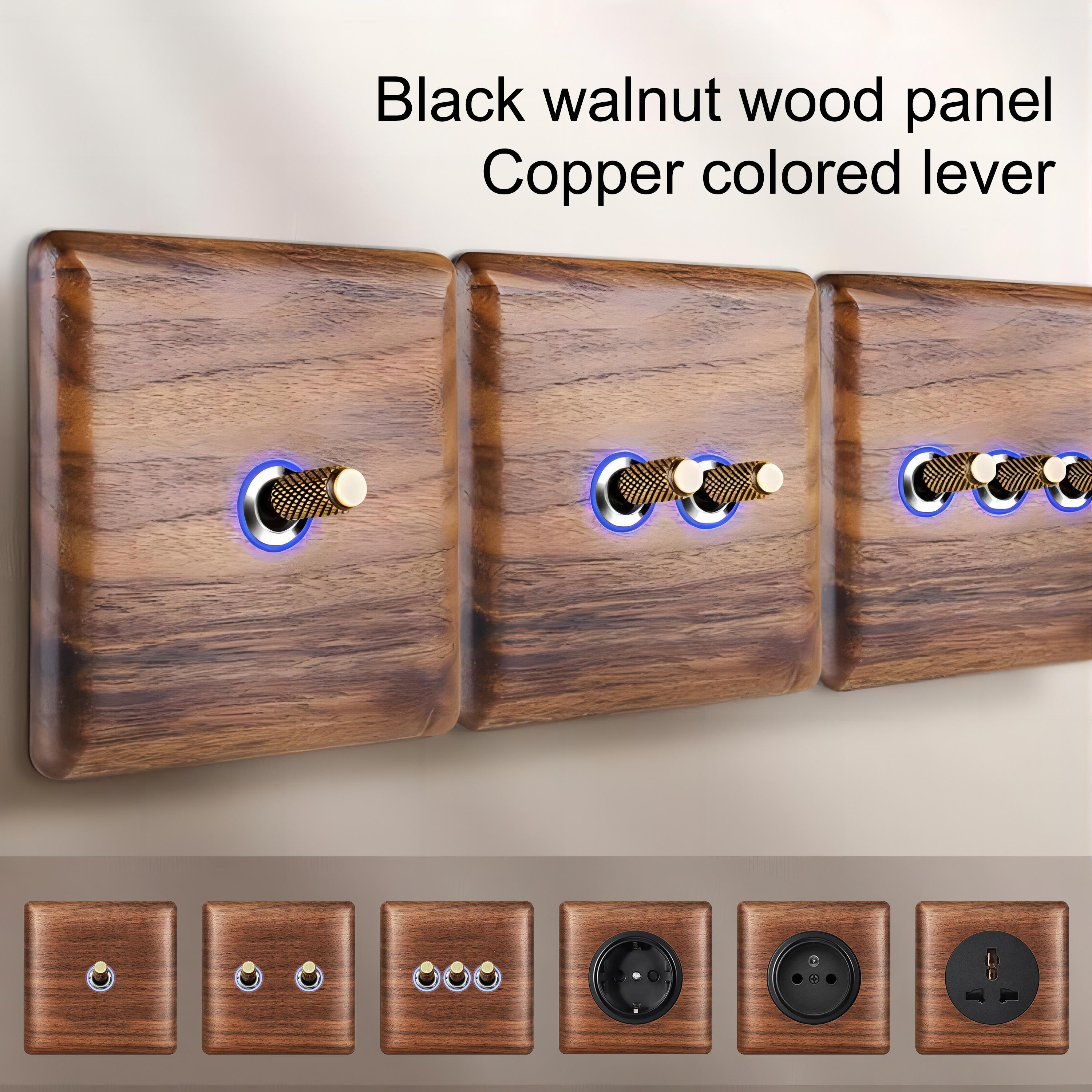 Prise Interrupteur Rétro Panneau de Commande Bras de Conduite Bois Massif Style Rétro EU/France/UK 1 Gang 2 Gang Double Commande Interrupteur Mural Bo