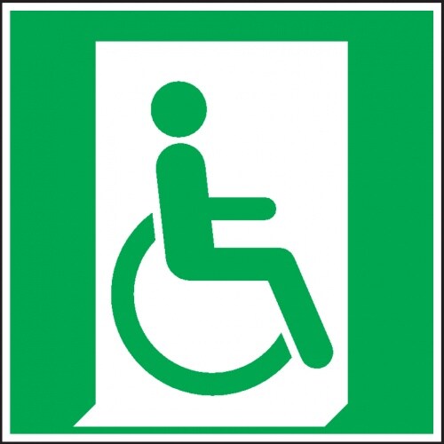 Aufkleber I Rettungszeichen Rettungsweg Rollstuhlfahrer rechts, Folie, selbstklebend, 150x150mm, ISO 7010