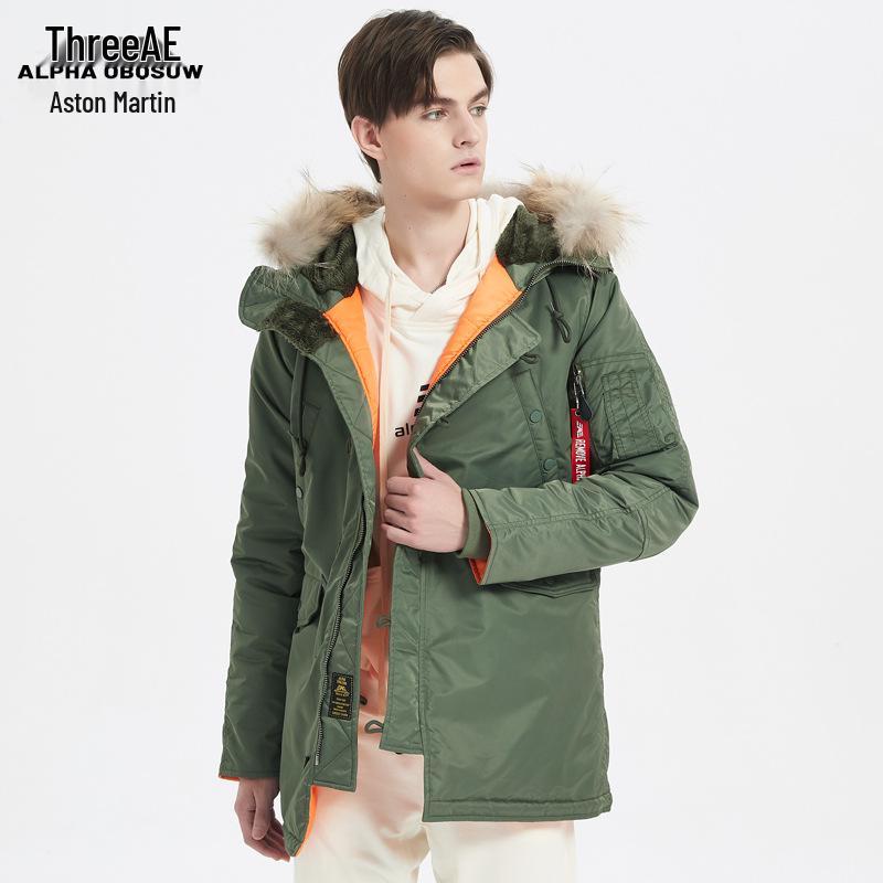 Men's Alpha Martin N3B Cotton Flight Suit Windbreaker - European & American Air Force Inspired, Cold-Proof, Medium-Length Winter Coat cm navy blue