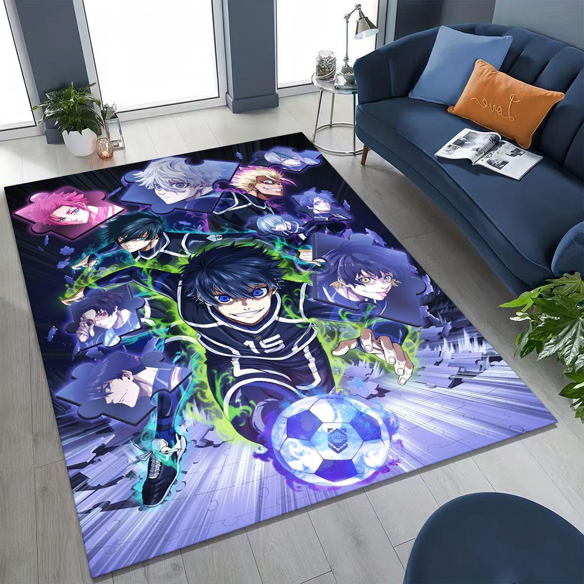 Cartoon BLUE LOCK Football Anime Isagi Rug for Bedroom Living Room Sofa Home Doormat Decor, Large Kids Play Non-slip Floor Mat