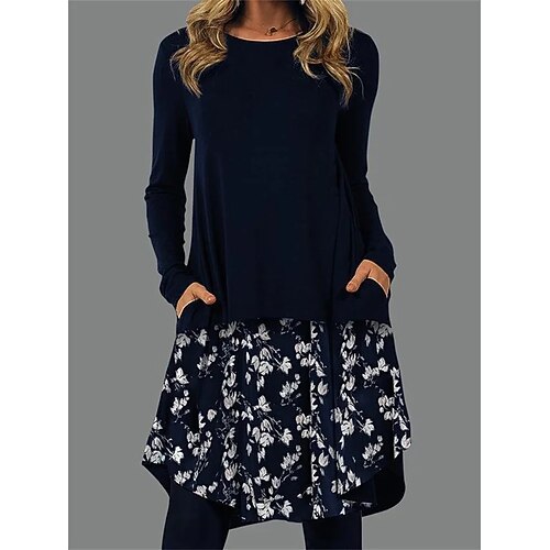 Per donna Abito Midi Tubino Vestito T-Shirt Abito a trapezio Abito sportivo Vacanza Casual Boho Quotidiano Vestibilità regolare Grafico Geometrico Pied-de-poule Manica Lunga Girocollo Blu Rosso Oro