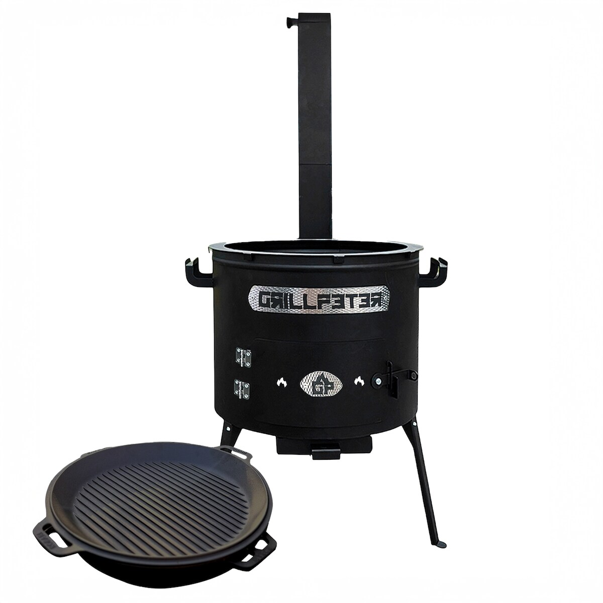 Grillpeter Utschak Set Asamat mit Schornstein Kazan 15 Liter Gusseisen mit Grilldeckel