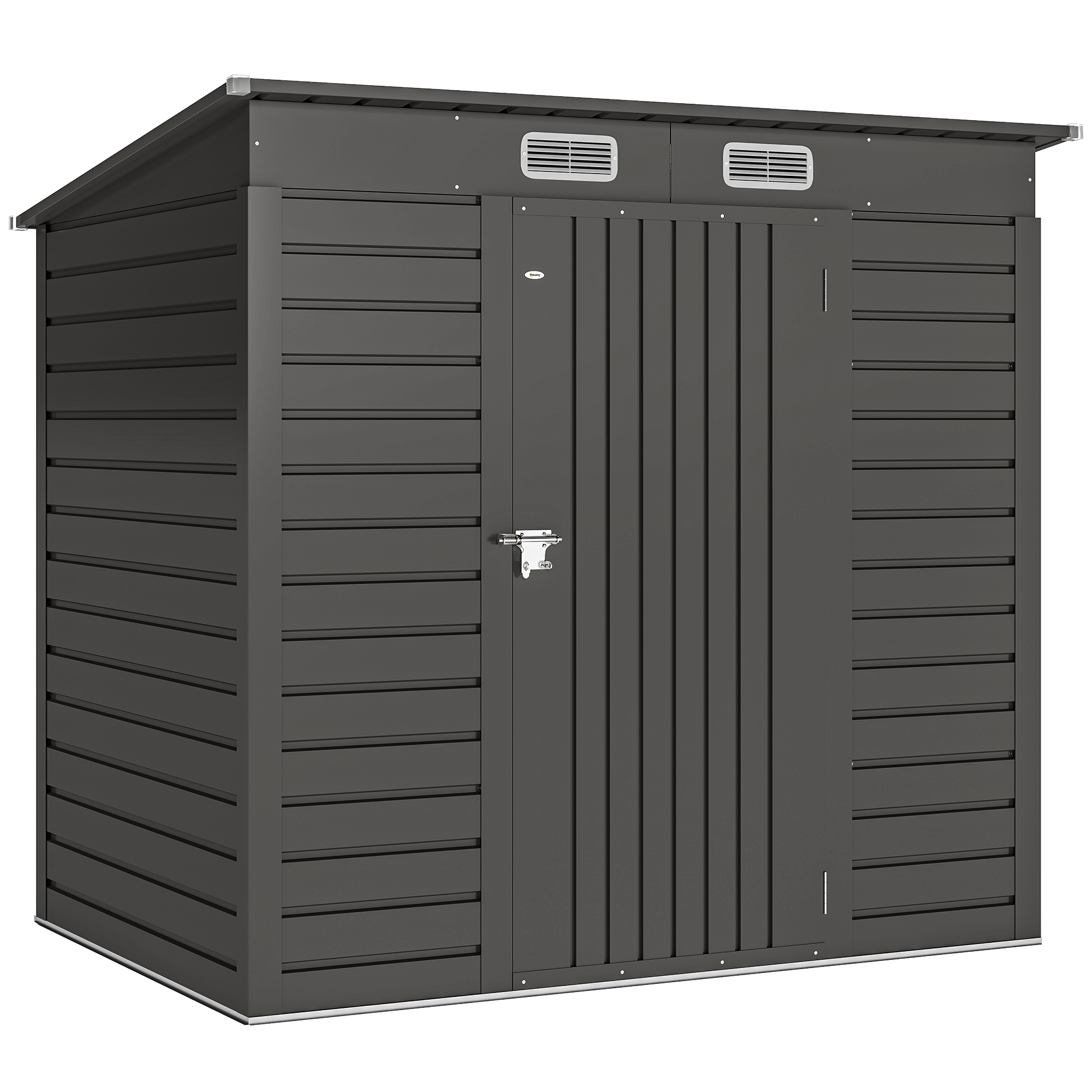 Outsunny Steel Shed with Foundation Kit and Lockable Door, Vents and Sloped Roof, 173H x 213L x 130Wcm, Dark Grey | Aosom UK