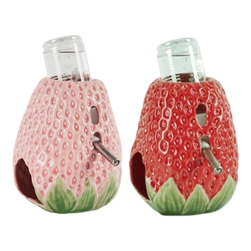 Strawberry Shape Rodents Drinking Bottle Shelter Place Ceramic Water Dispenser Leakproof Small Pet Watering Accessories Rose