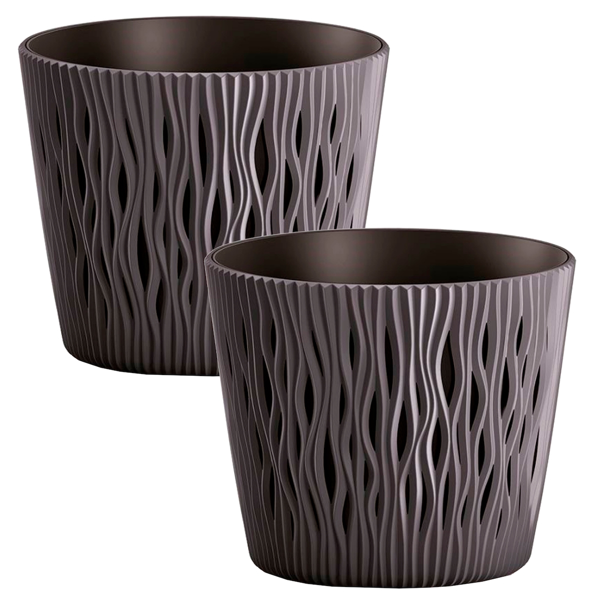WellHome - Set mit 2 Pflanztöpfen 1,7L Sandy Round Ø15,8 cm/Stück in Mocca