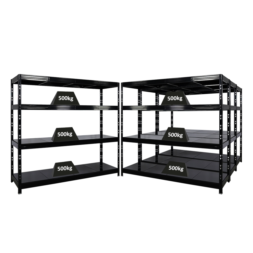 PROREGAL Mega Deal | 4x Profi Schwerlastregal Rhino | HxBxT 180x200x60cm | 4 Stahlplatten-Ebenen | Fachlast 500kg | Schwarz