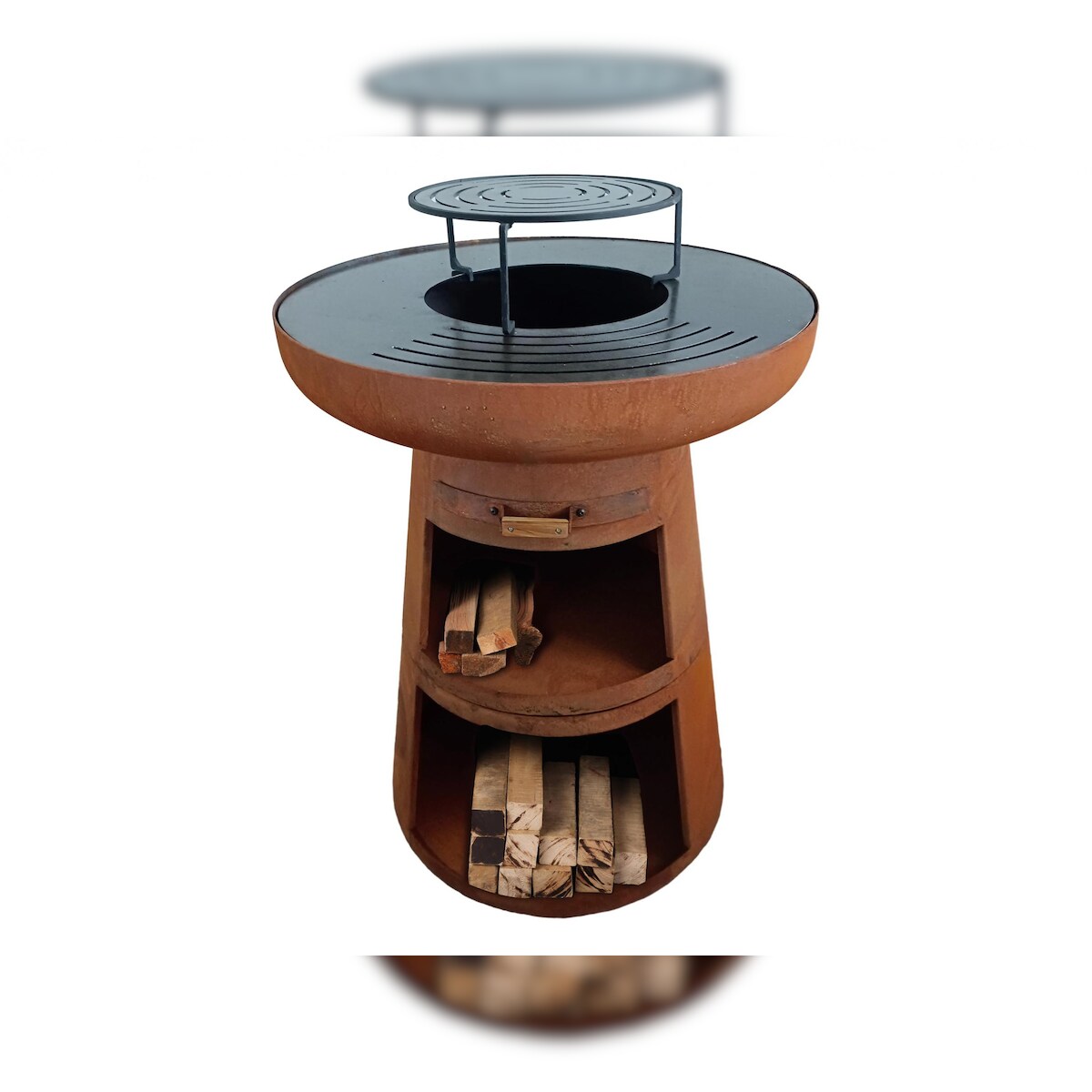 PURLINE Rundgrill mit runder Stahlplatte und Rost aus Cortenstahl EFP55RCO