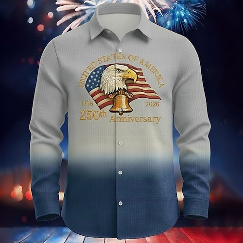 Per uomo Aquila Bandiera degli Stati Uniti 250° anniversario degli Stati Uniti Camicia Camicia a nido d'ape Camicia casual Manica Lunga Vintage Retrò Abbigliamento Quotidiano Ferie Estate Primavera