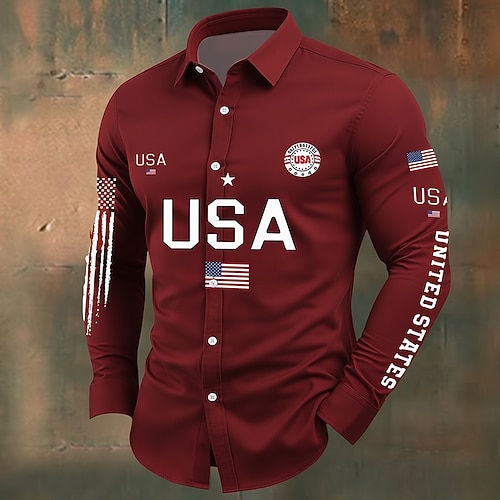 Per uomo Bandiera degli Stati Uniti Patriottico 250° anniversario degli Stati Uniti Camicia Camicia con Bottoni Manica Lunga Vintage Retrò Ferie Casual Quotidiano Primavera Autunno Collo ripiegato