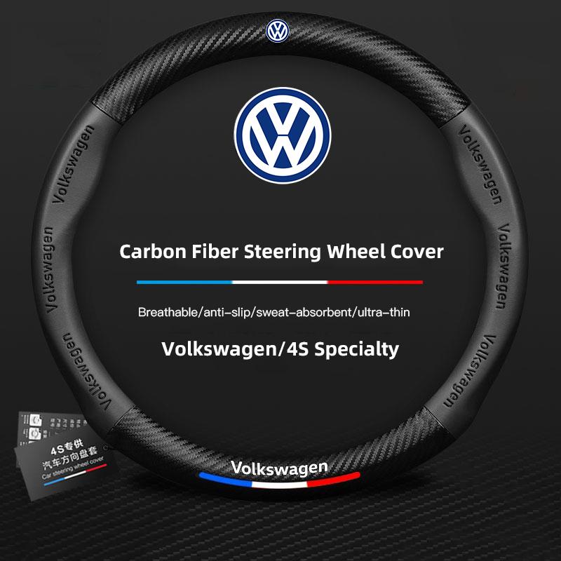 For Volkswagen T-ROC T-Cross Touareg Polo Passat Golf GTI Beetle Magotan Tiguan CC Carbon fiber Leather Car Steering Wheel Cover