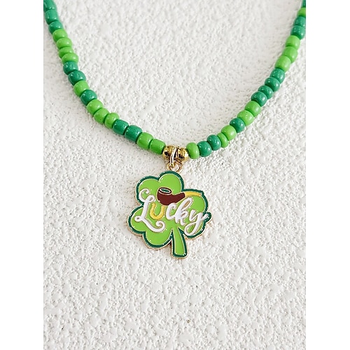 Collana da donna in lega e acrilico con trifoglio e diversi stili di pendente, perline verdi, perfetta per il giorno di San Patrizio e per l'uso quotidiano