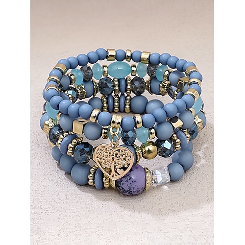Set di braccialetti in acrilico e lega in stile boho da donna: vari colori, ciondolo a forma di cuore, perfetti per San Valentino e per l'uso quotidiano