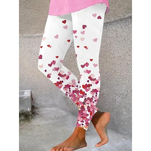 Leggings da donna per San Valentino, stile etnico vintage, pantaloni lunghi a vita alta, grafica a cuore, morbidi, comodi, elastici, per tutti i giorni, per casa, all'aperto, neri, bianchi, estate,
