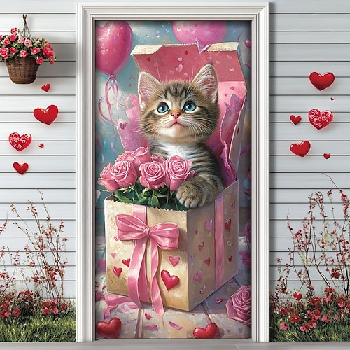 decorazioni esterne per San Valentino copriporta arazzo per porta tenda per porta decorazione fondale interno/esterno striscione per porta d'ingresso fattoria gatti coppia