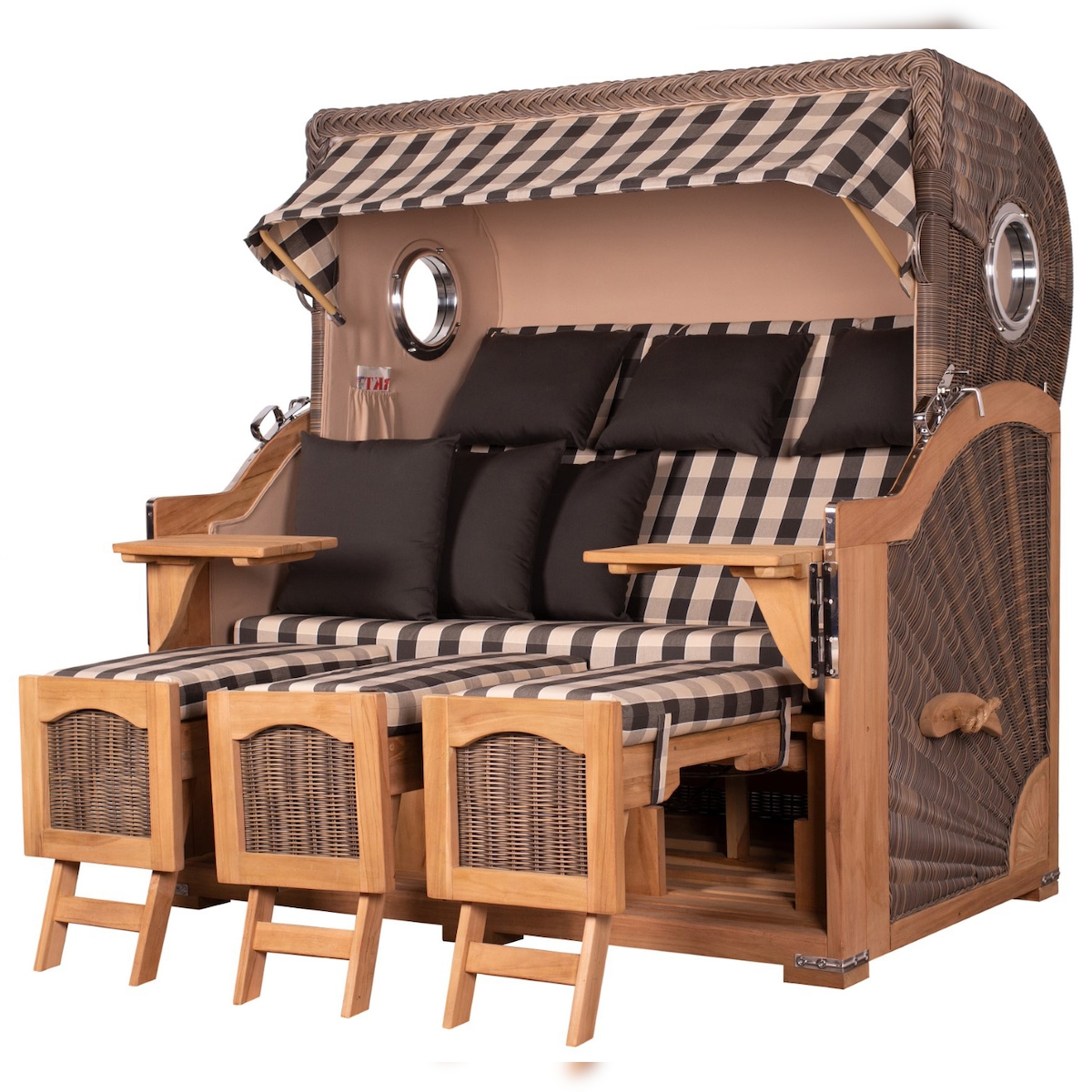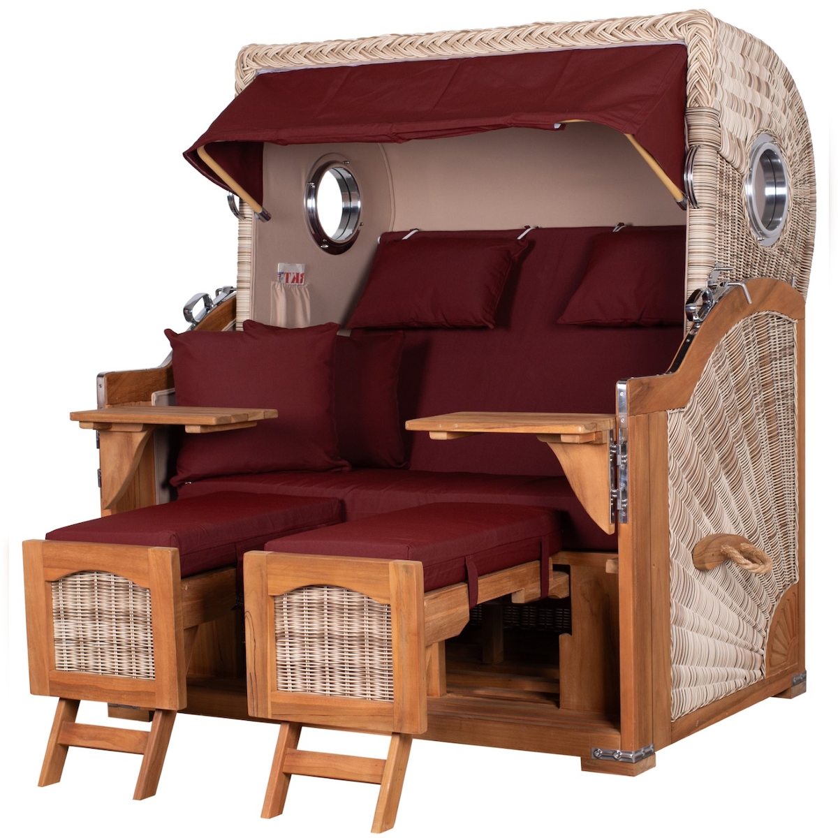 Mr. Deko Strandkorb Komplettset - bene living - Königssee 3-Sitzer Teak - PE shell - Modell 550 - inkl. Liftersystem