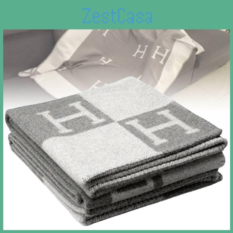 Luxurious Wool Cashmere Blanket Thick Warm Geometric Pattern Office Throw grey