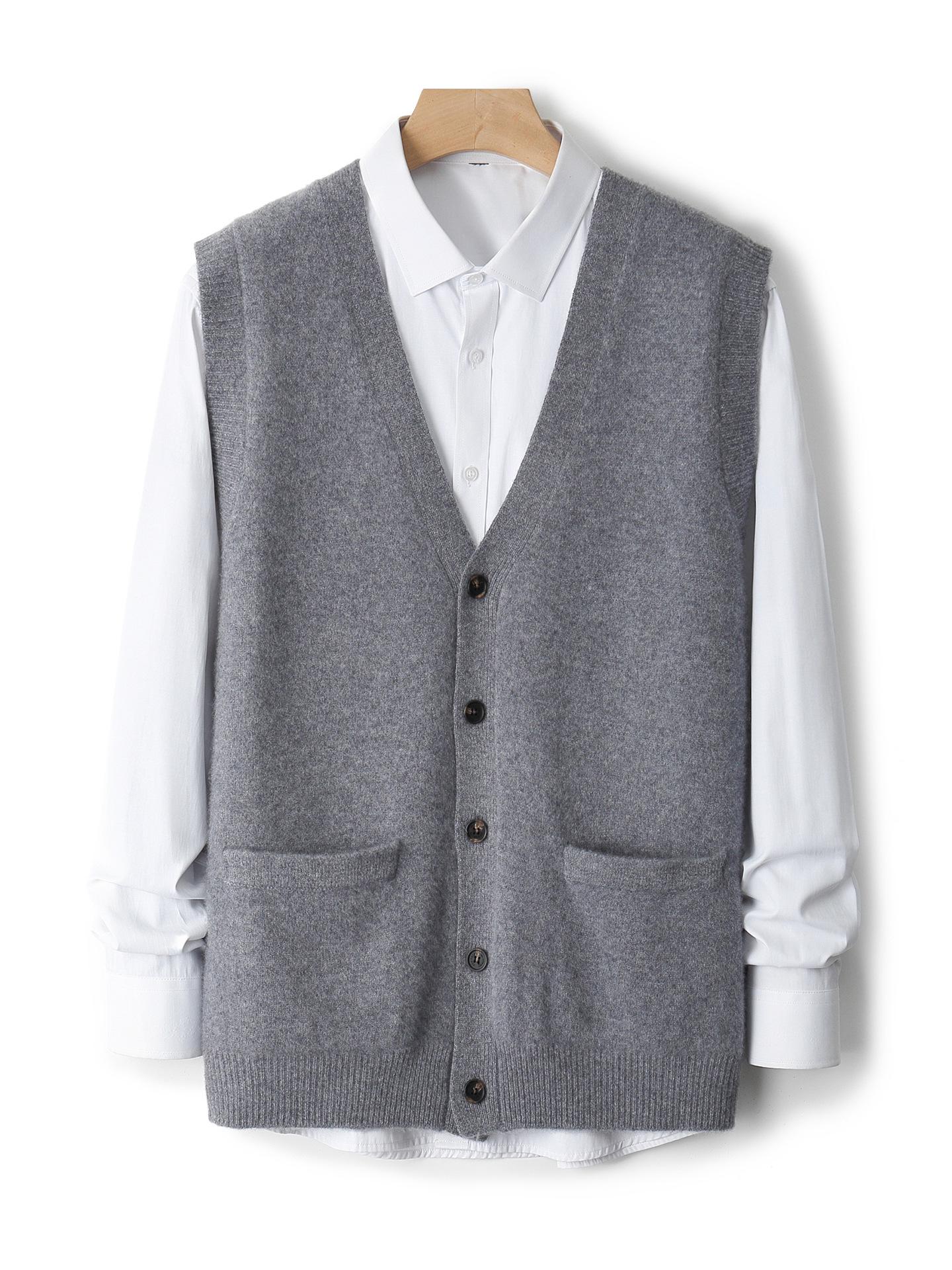 100% Pure Wool Men's Sleeveless V-Neck Cardigan - Thick, Warm, Loose Fit for Middle-Aged cm