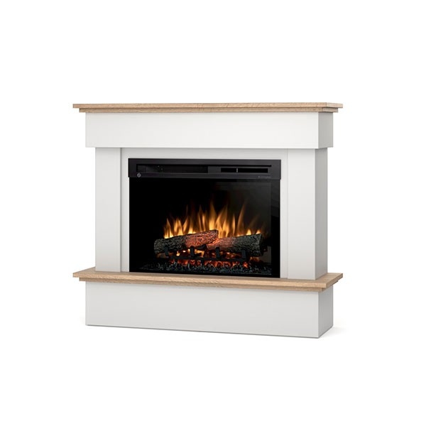 OutInFire TORMES – Freistehender elektrischer LED-Kamin – 26 Zoll – Mattweiß / Helle Eiche – 108 x 93 x 33,5