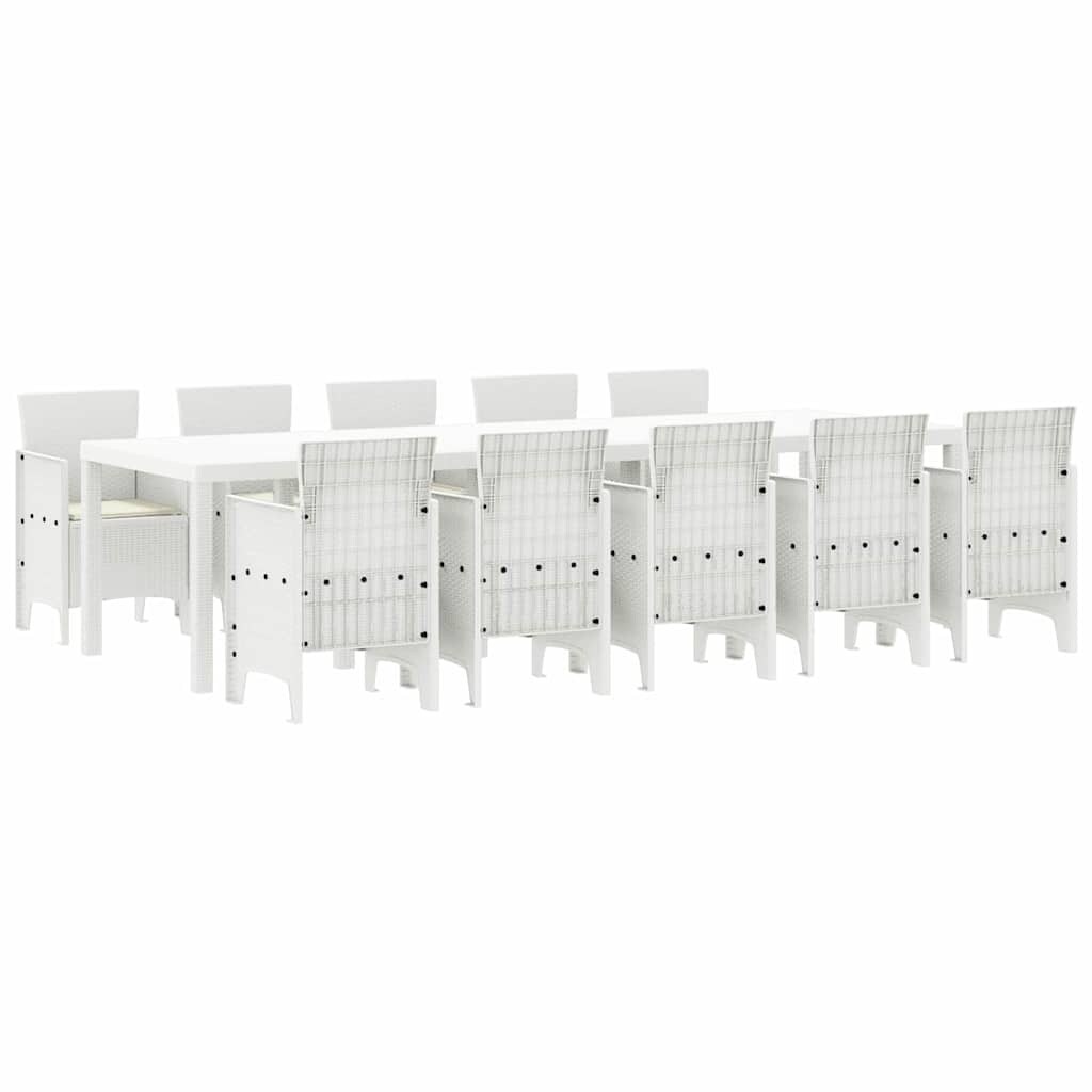 vidaXL Garten Essgruppe mit Kissen 11 pcs Weiß Poly-Rattan und Stahl