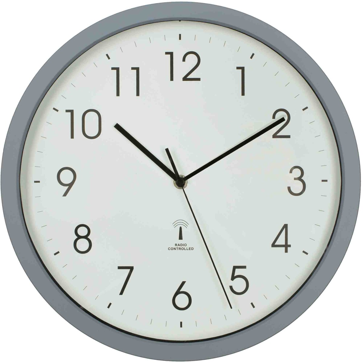 Funkwanduhr Analog Uhr rund Ø 34.5 cm weiß Kunststoffrahmen grau