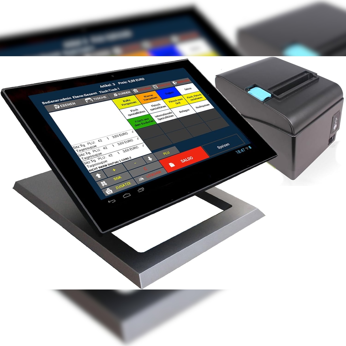 13,3" Kasse für GASTRONOMIE (Restaurand, Biergarten usw.): Touchscreen Terminal, Bondrucker