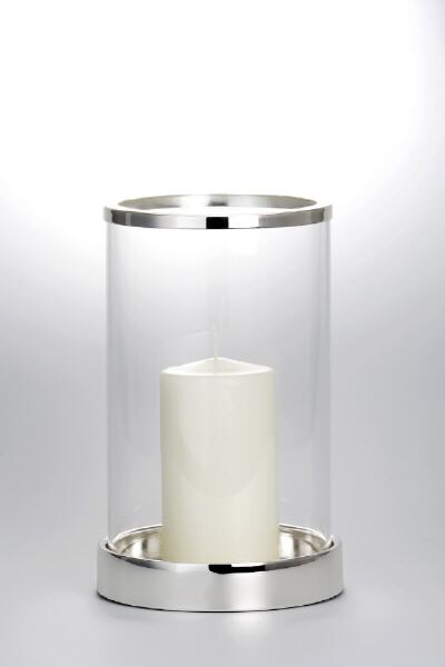 Windlicht versilbert und anlaufgeschützt mit Klarglas (H 26 x D 16,5 cm)