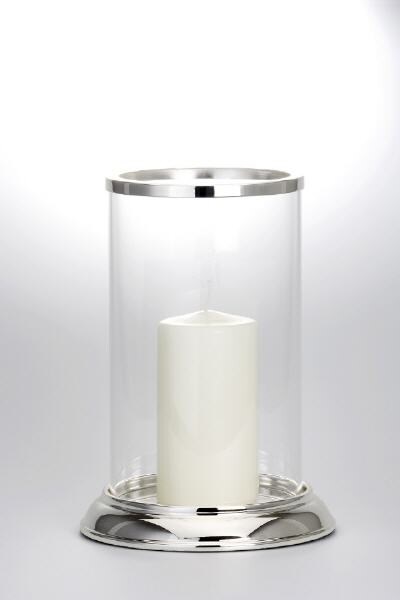 Windlicht versilbert und anlaufgeschützt mit Klarglas (H 28 x D 19,5 cm)