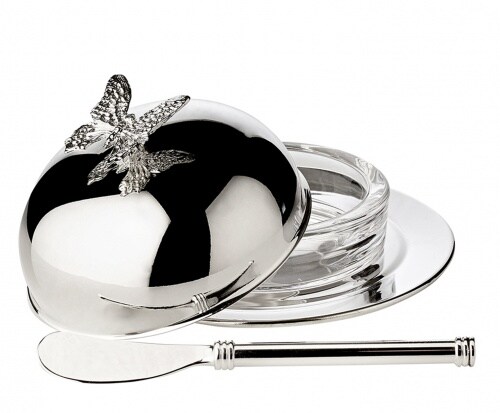 EDZARD Butterglocke Butterfly, mit Glasschale und Deckel, edel versilbert, ø 14 cm, mit Buttermesser