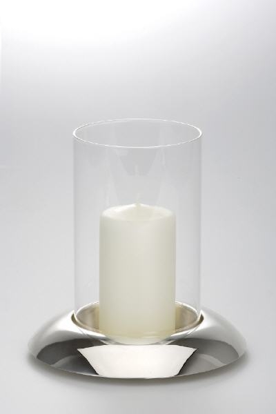 Tischwindlicht versilbert und anlaufgeschützt mit Klarglas (H 18 x D 17 cm)
