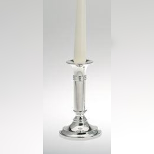 Leuchter, Kerzenleuchter versilbert anlaufgeschützt glatt poliert mit rundem Fuß (H 15 x D 8,5 cm)