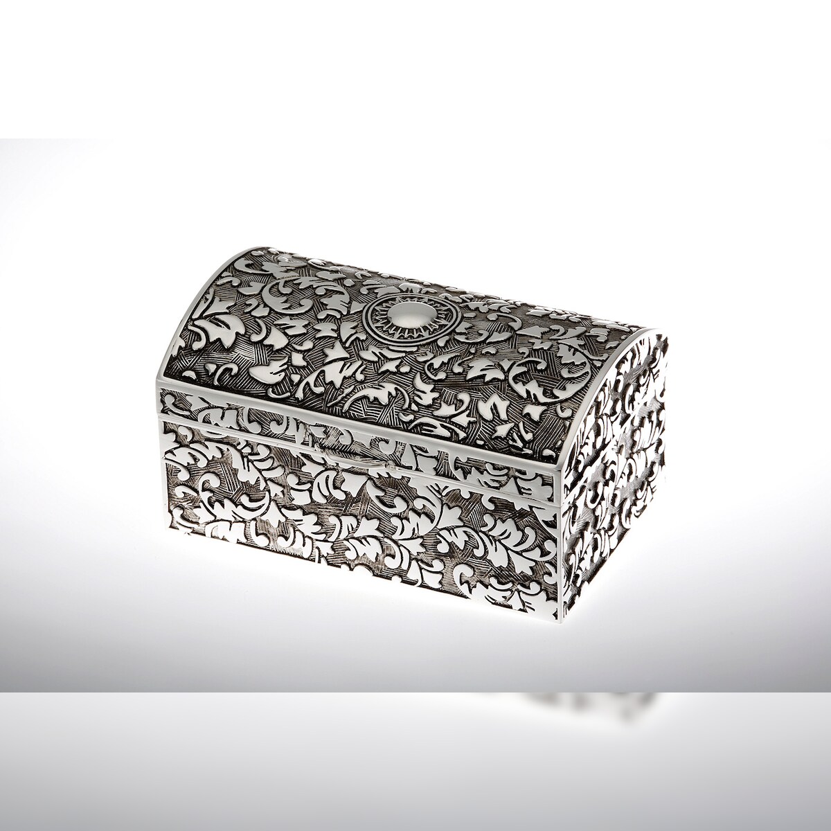 Schmuckdose Schatztruhe rechteckig mittel/antik versilbert 10,0 x 6,5cm H 5,3cm
