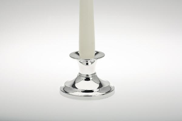 Leuchter, Kerzenleuchter versilbert anlaufgeschützt glatt poliert mit rundem Fuß (H 6 x D 8,5 cm)