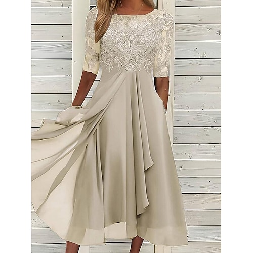 Per donna Abito Midi Abito in Pizzo Abito da Cocktail Abito da invitata a nozze Vestito in Chiffon Elegante Formale Feste Matrimonio Vestibilità regolare Mezza Manica Girocollo Blu Rosa Vino Verde