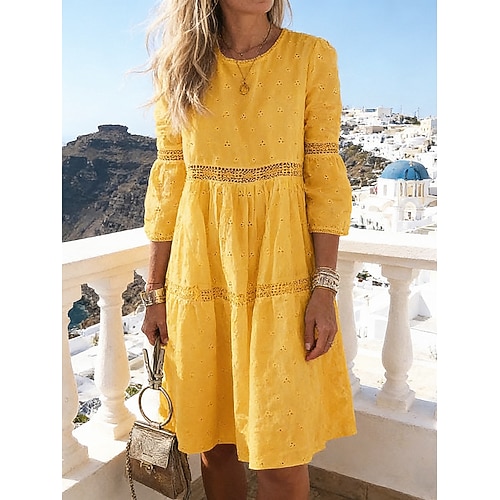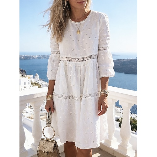 Per donna Abito al ginocchio Abito Bianco Abito da Spiaggia Abito in Pizzo Vestito Casual Elegante Moda Moderno All'aperto Spiaggia Vacanza Vestibilità comoda Semplice Mezza Manica Girocollo Blu