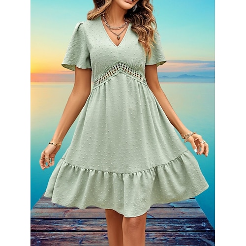 Per donna Abito al ginocchio Abito da Spiaggia Abito in Pizzo Vestito Casual Elegante Moda Moderno All'aperto Spiaggia Vacanza Vestibilità regolare Semplice Manica Corta Scollo a V Marrone rossastro