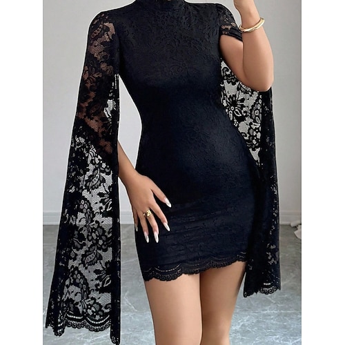 Per donna Abito Lungo Maxi Abito Mini Abito Abito nero Abito in Pizzo Vestito Casual Elegante Moda Moderno Quotidiano Vacanza Uscire Vestibilità regolare Floreale Semplice Manica Lunga Collo alla