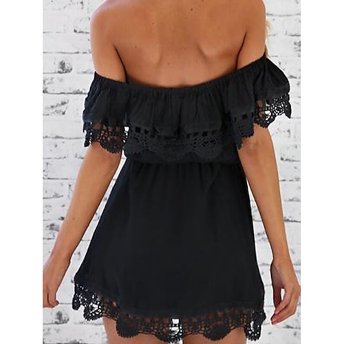 Per donna Mini Abito Abito Bianco Abito in Pizzo Vestito Casual Elegante Moda Romantico Spiaggia Vacanza Uscire Vestibilità regolare Semplice Manica Corta Senza Spalle Nero Bianco Estate Primavera