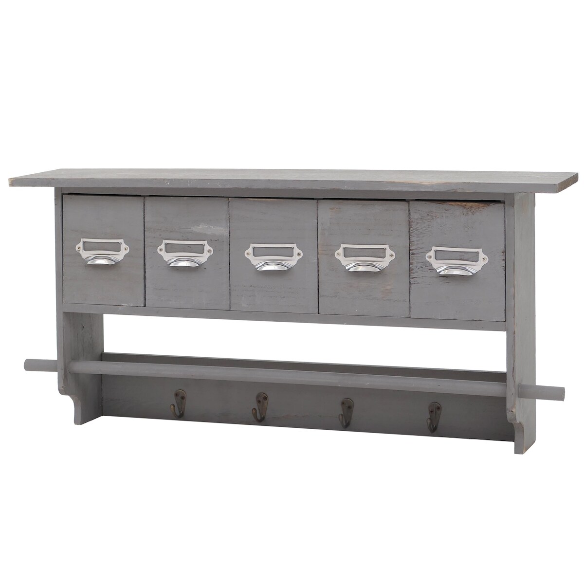 Mendler Garderobe HWC-C49, Wandgarderobe Wandregal, Vintage mit 5 Schubladen 32x65x13cm ~ Shabby Look, grau