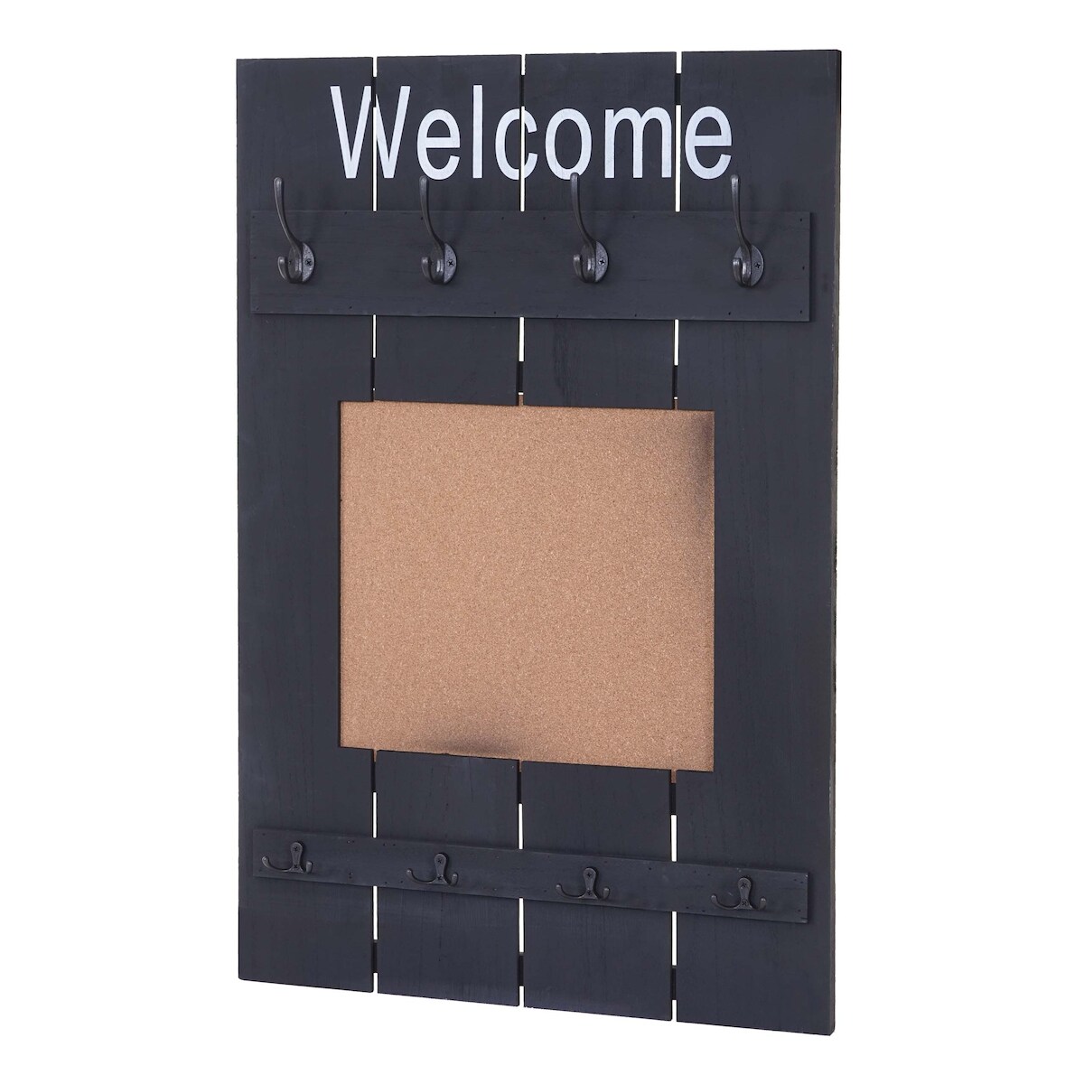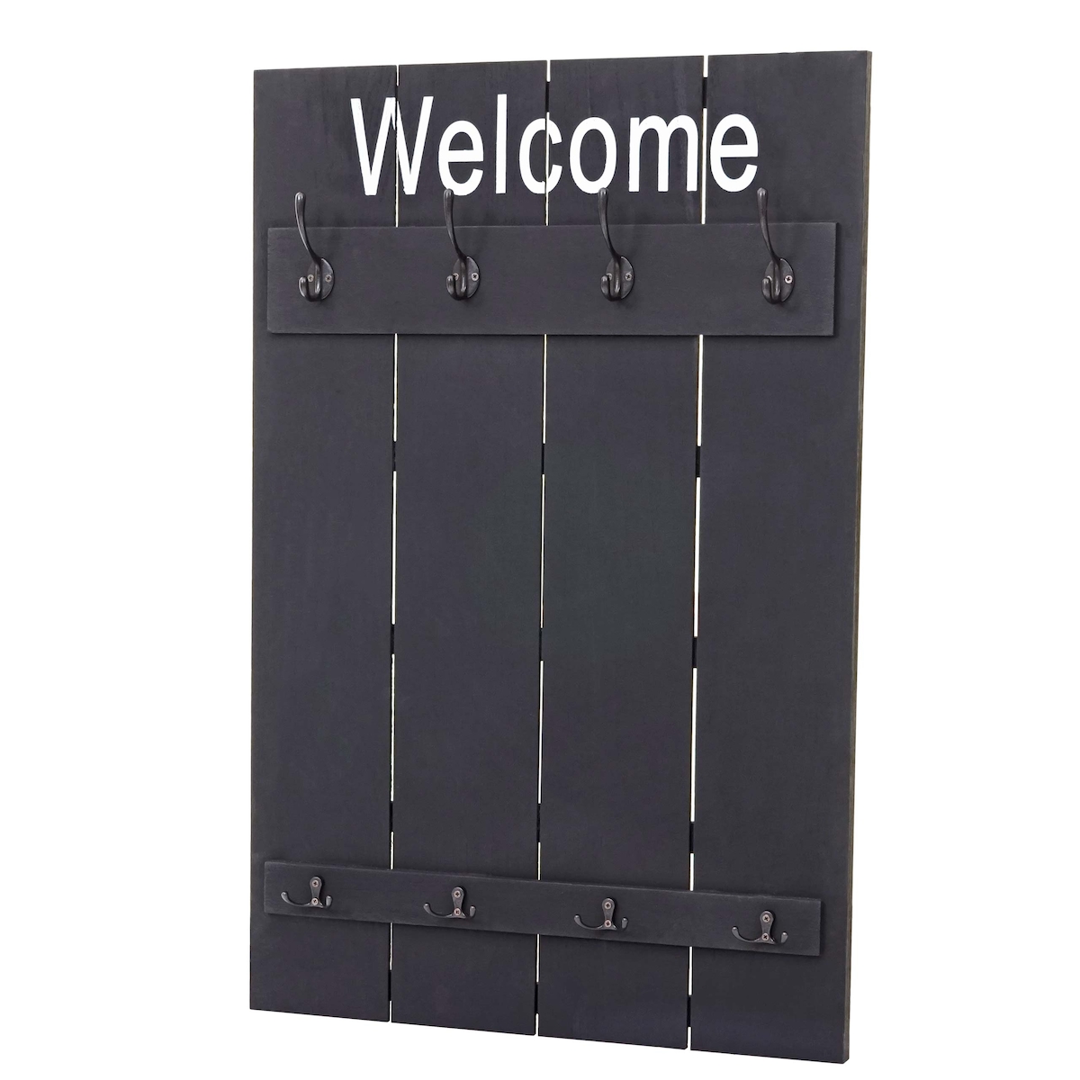 Mendler Wandgarderobe HWC-C89 Welcome, Garderobe Garderobenpaneel, Shabby-Look Vintage, 91x60cm ~ dunkelgrau, shabby