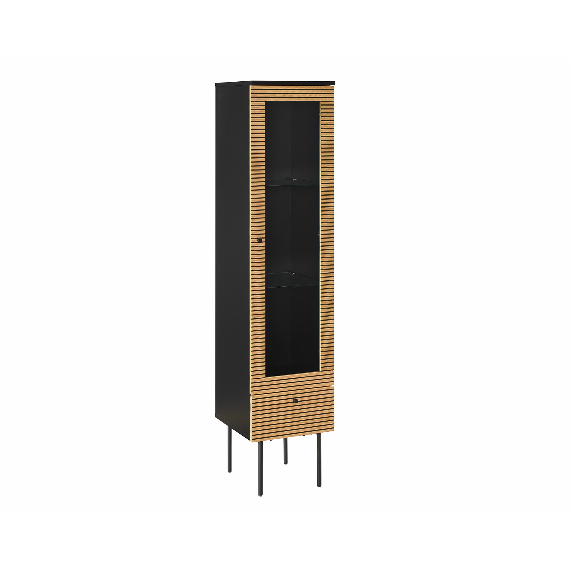 Vitrine WOOOD "Finca", schwarz, B:78cm H:210cm T:40cm, Holzwerkstoff, Schränke, Vitrine, mit modernem Push-to-Open-System, Breite 78 cm