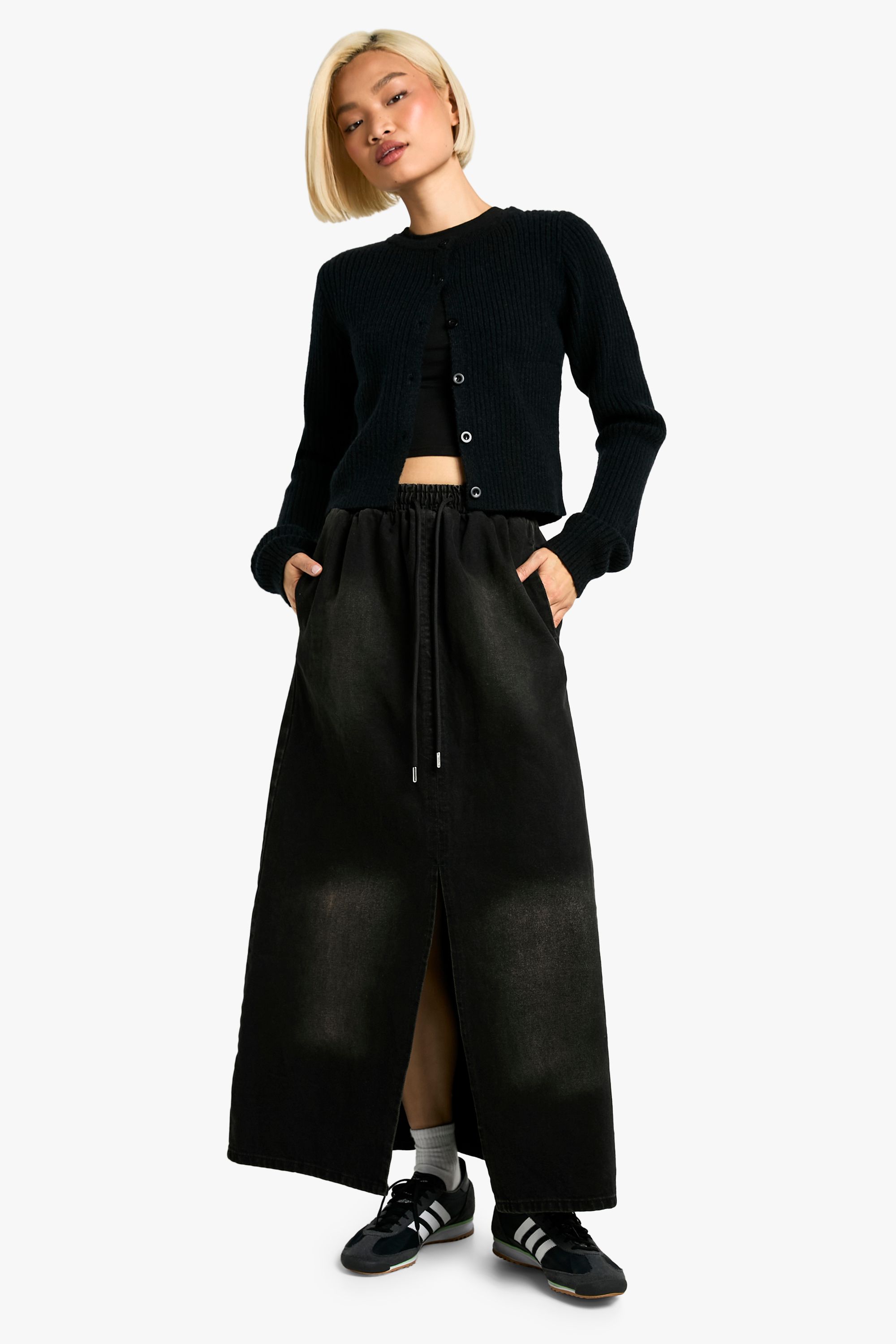 Boohoo Womens Washed Black Elasticated Waist Maxi Skirt Cotton - Size 6 UK | Boohoo Sale | Discount Designer Brands