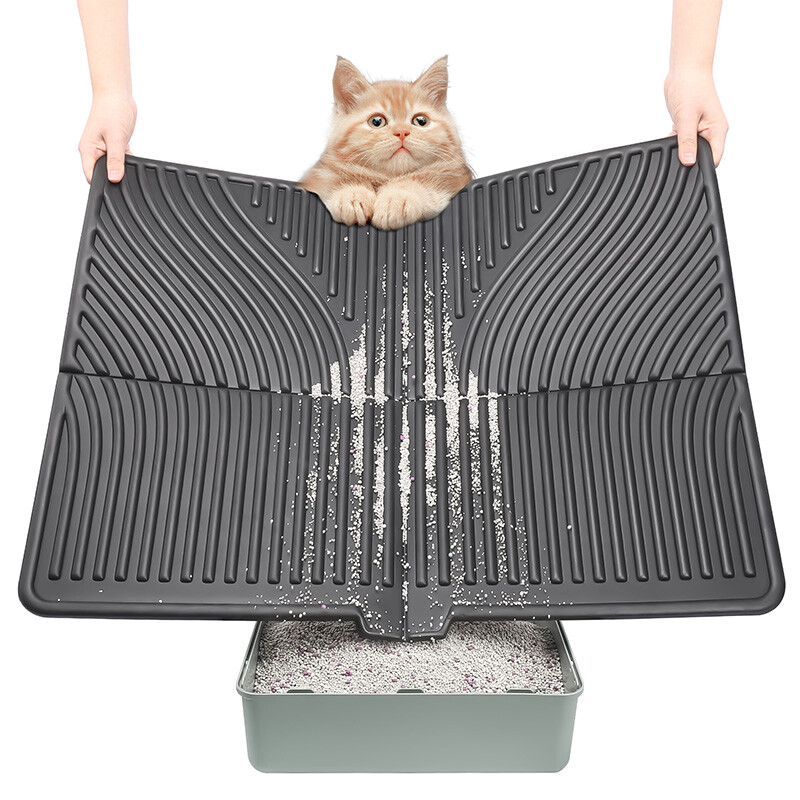 Blinkit 0152-1 Foldable Cat Litter Mat/Litter Collection Mat, Large Size EVA Material, Waterproof and Non-slip Design, Quickly Recovers Litter for Easy Cleaning, Suitable for Cat Litter Box Surroundings, Black/Gray/Blue/Beige