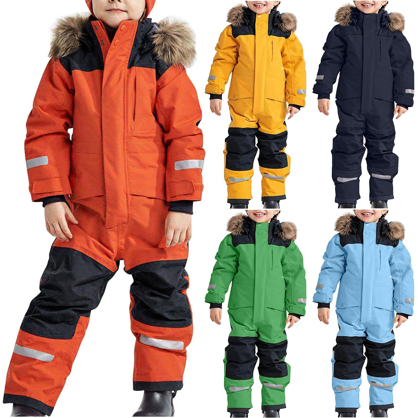 Children's Fashion Outdoor Waterproof Fleece-Lined Thickened Warm Boys' And Girls' One-Piece Ski Suit cm blue
