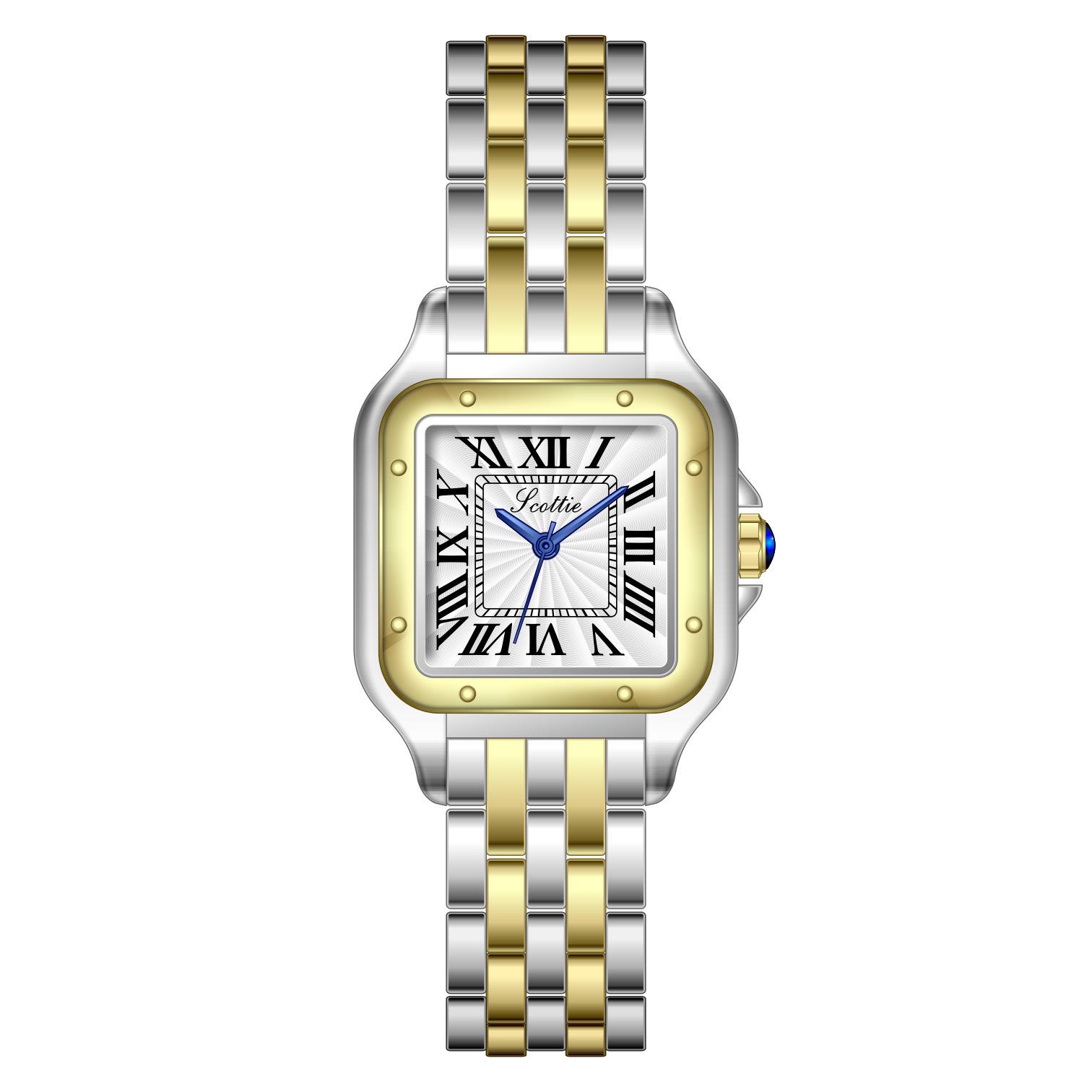 Quartz Watch Dual Time Digital Classic Roman Scale Waterproof Quartz Watch