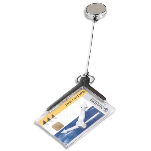 DURABLE 10er-Packung Namensschildhalter DELUXE PRO für 1 Karte mit versenkbarem, verchromtem Aufrollmechanismus - L85 x H54 mm