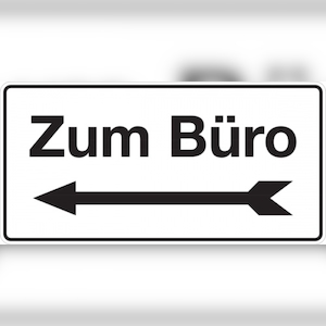 Hinweisschild, Zum Büro + Pfeil links, 150 x 300 mm, Aluminium - 300x150x0.45 mm Aluminium geprägt
