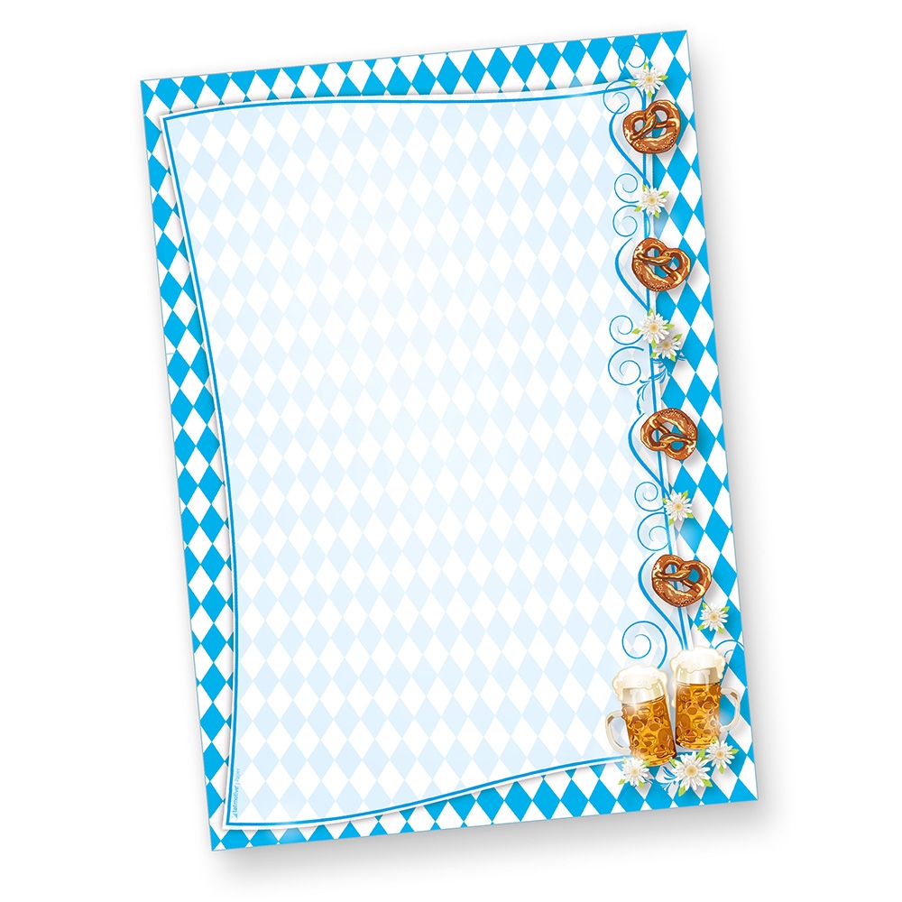 TATMOTIVE Briefpapier bayrisch (250 Stück) mit Rautenmuster Bayern , Bier und Brezeln für Einladung oder Papier Speisekarte Getränkekarte zum bayrischen Fest