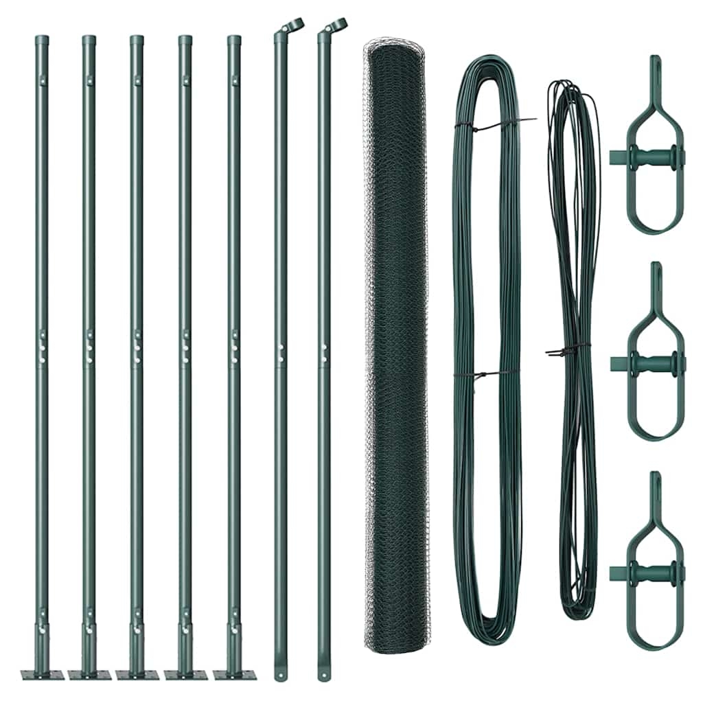 vidaXL Zaun mit Pfosten Grün 1,5 x 10 m Stahl und PVC
