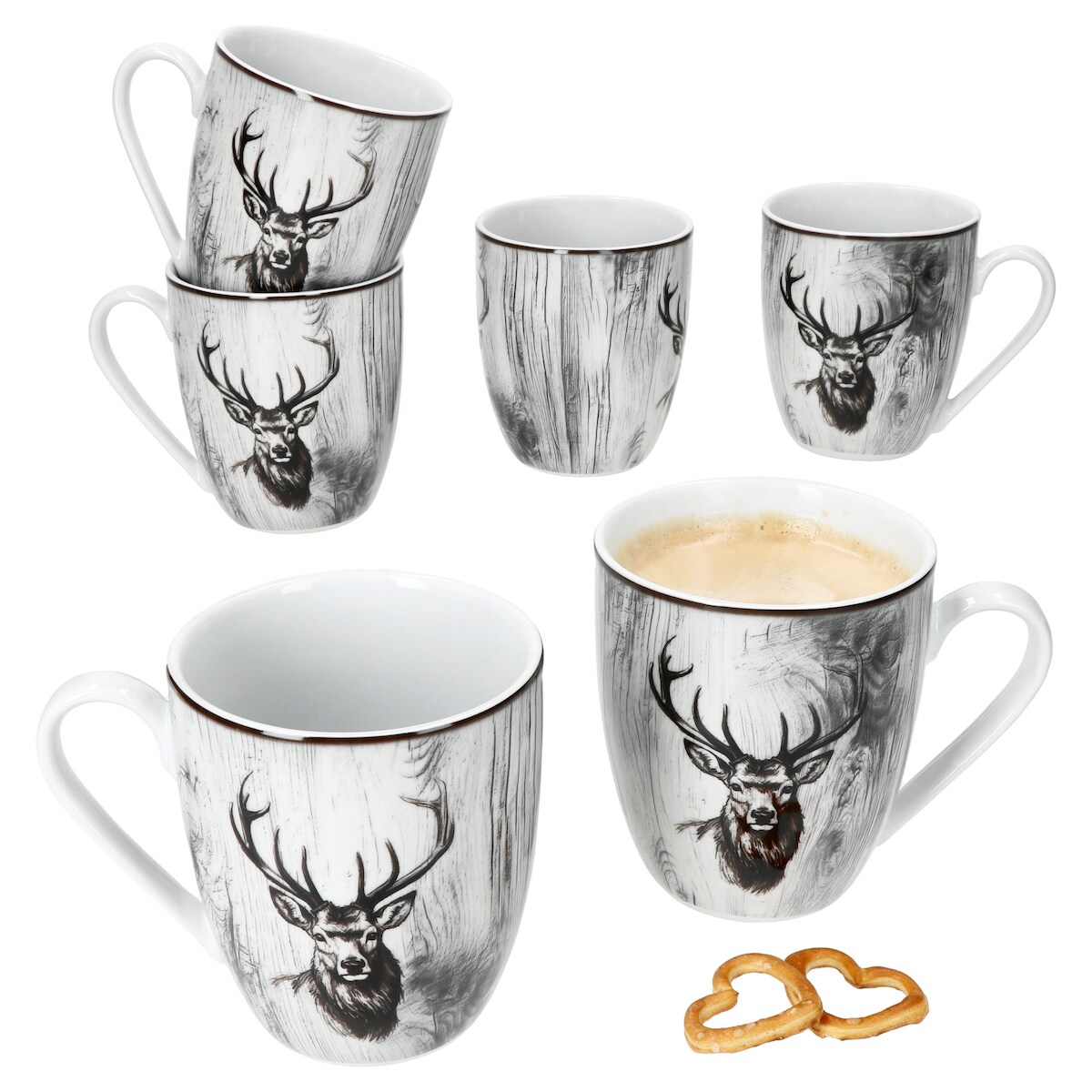 6er Set Alois Kaffeebecher 350ml Porzellan-Tassen 6 Personen Hirsch Tee Kakao